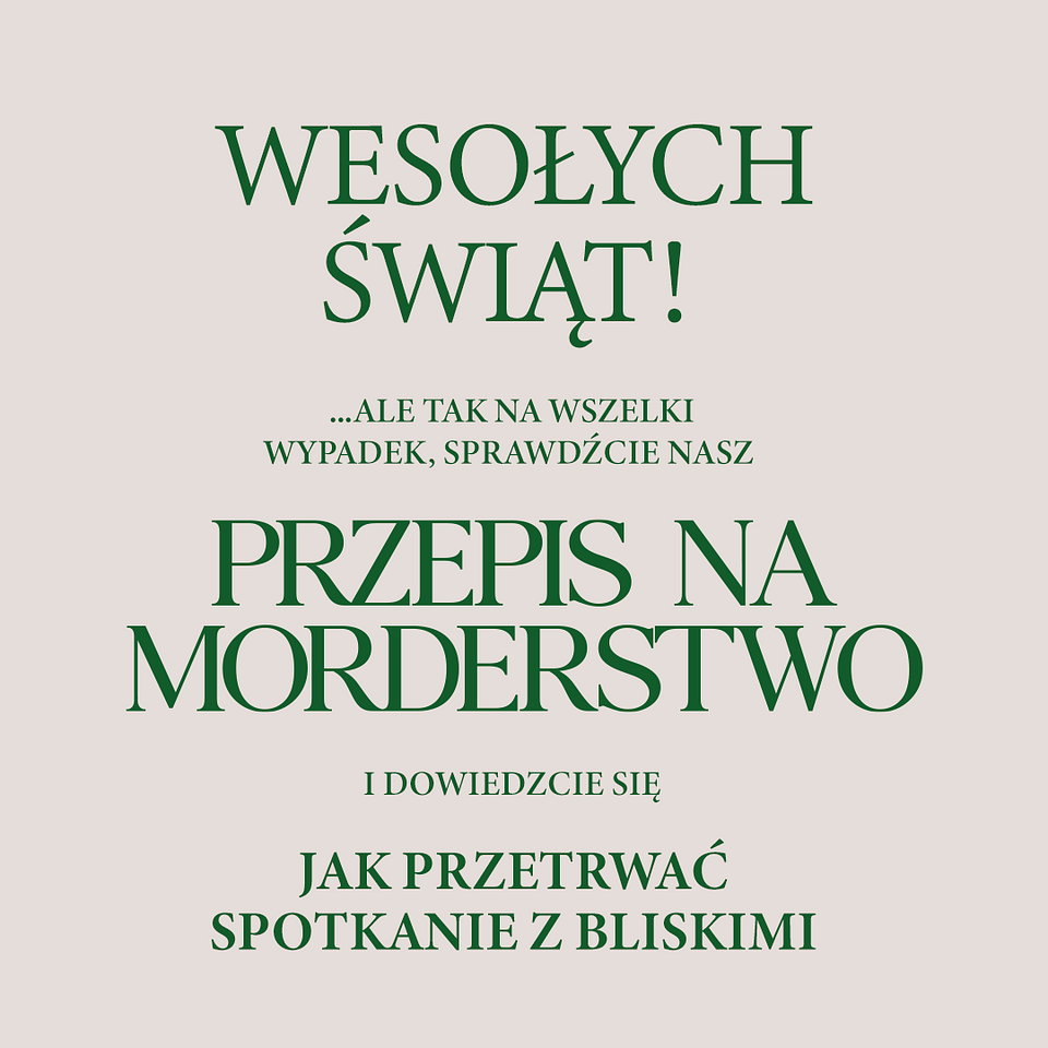 A jeśli szukasz idealnego planu na świąteczny poniedziałek, wybierz morderczo dobrą rozrywkę - tylko w Poniedziałek Wielkanocny zapraszamy na ekskluzywne pokazy przedpremierowe filmu PRZEPIS NA MORDERSTWO. O szczegóły zapytaj w swoim ulubionym kinie!